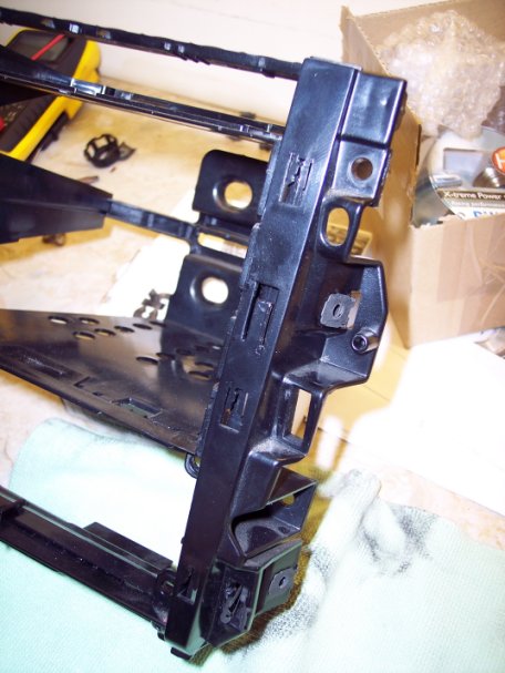 And here is the radio cage with no trim where you can see the tab in the middle that holds the trim on. The smaller clips are where the other larger studs slot into. These are the reason why the trim must be pushed down the way. If the trim was pulled straight out it would most likely break these clips or at the very least it would bend them. |