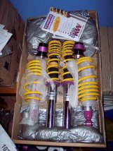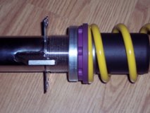 I also had these sitting in the house for a while and decided it was time to get them sorted. They're KW V1s. I didn't like the way the front shocks had a grub screw to hold the adjuster ring in place so I had an aluminium locking ring made to fit them. It means the rings can lock tight and there is no rish of damaging the threads. |