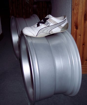 Here's my new shoes sitting under my old shoes. Can't beat a bit of brock. 17x8.5 ET13 at the front and 17x10 ET20 at the back. |