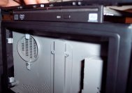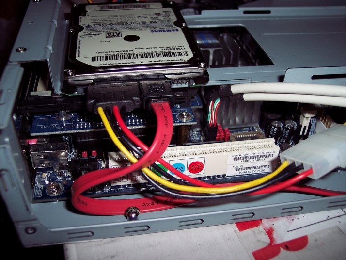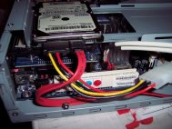 And the SATA drive screwed to the shelf inside the case. You can see below the Cardbus and PCMCIA reader which i'll probably be setting up to boot windows from later this year.