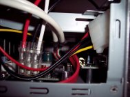 And this is where I managed to squeeze a load of wires though past the power supply.
