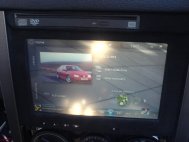 I'm all up and running as the pics below show. I had a nice surprise when it didn't boot up first time. I blew a fuse when I accidently routed some unwanted current accross 2 wires. But anyway, all is reasonably well. the interference is something i'll need to sort out as it's pretty bad but I sort of expected that after ramming loads of wires together over the last couple of days. I'll try and sort out the source of the problem tomorrow but i'd put money on that it's something to do with the power wires running up to the dash for the ignition toggle switch. Hopefully, I can get a few problems ironed out tomorrow and get the stock head unit plugged back in so I can get some of the trim on. Only thing left to mention is that the momentary remote switch works perfectly.