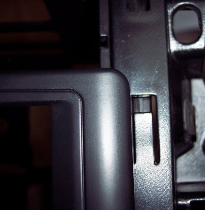 This is where the dremel comes in. I placed the slim slot loading dvd drive into the space above the screen housing to make sure the height was ok. There was only about 1mm to trim off the housing to get the height correct.