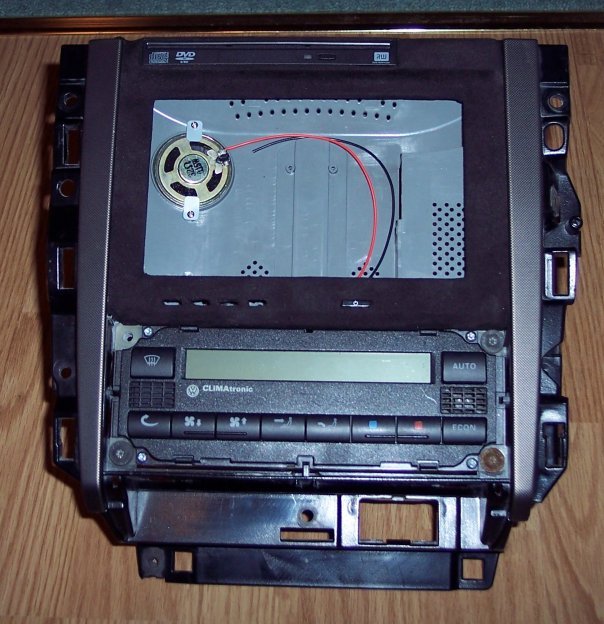 I took a radio cage from a VW golf in a scrapyard as the golf and bora interior parts are interchangable. I decided that it was better to have a spare cage to practise on first. It turned out that the practise cage is now the one i'll be using in the car. I got a spare housing from armin at Digital WW for about £15 posted. Top notch service. As you can see below, the screen was pretty close to fitting but was slightly too wide.