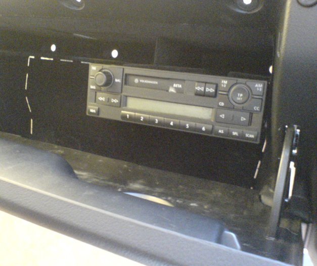 Here's something that turned out better than I thought it would. This is where I'm putting my existing headunit. As you can see it fits pretty well into the glovebox. I need to trim and tidy it up a bit. I had to cut a little bit out of the back of the glovebox to let it slide back enough to let the door close and plug the wiring into the back of the radio. I love my dremel - don't know what i'd do without it.